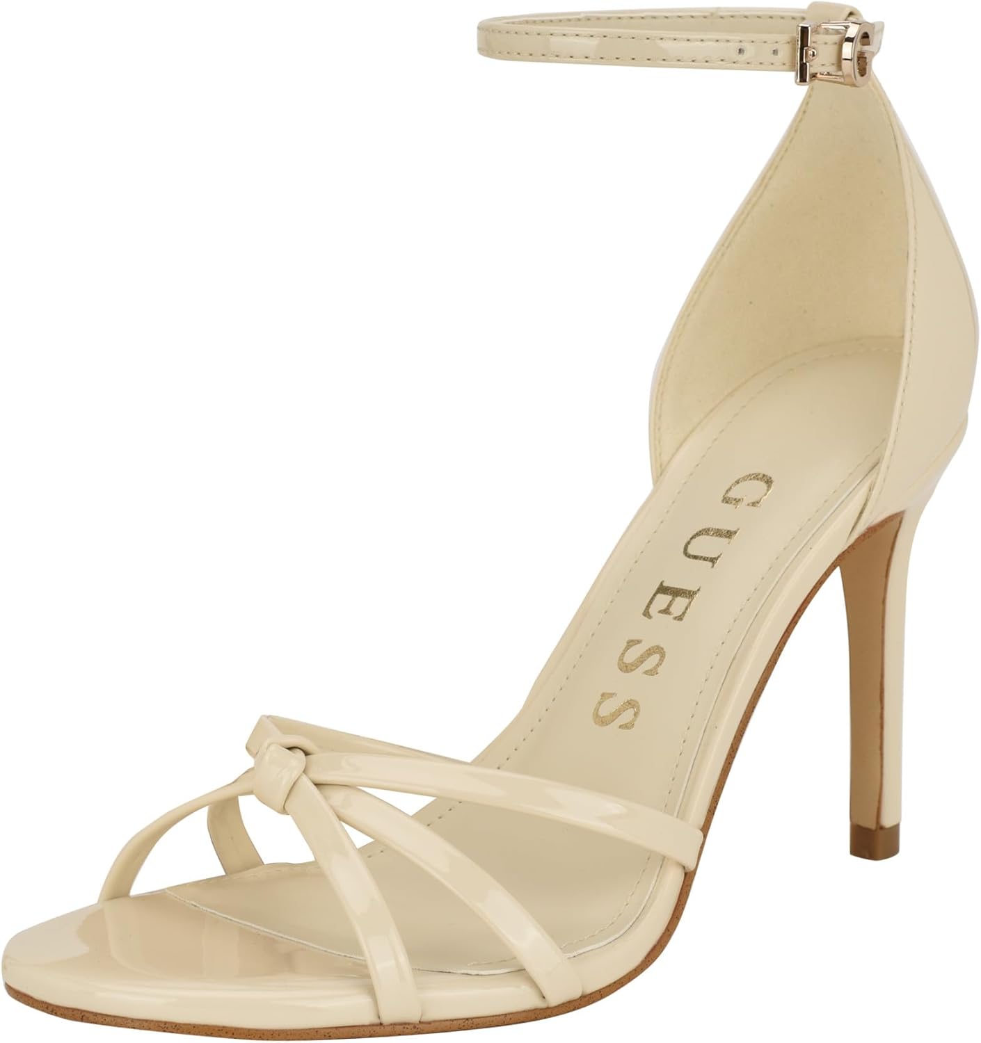 Any formal occasion, the Guess Spring is your go to stiletto heel. With an adjustable ankle strap and detailed with a front knot, it gives a modern lift to this stiletto sandal. Est. 1981, Guess is a global lifestyle brand and a symbol of a young, adventurous lifestyle.