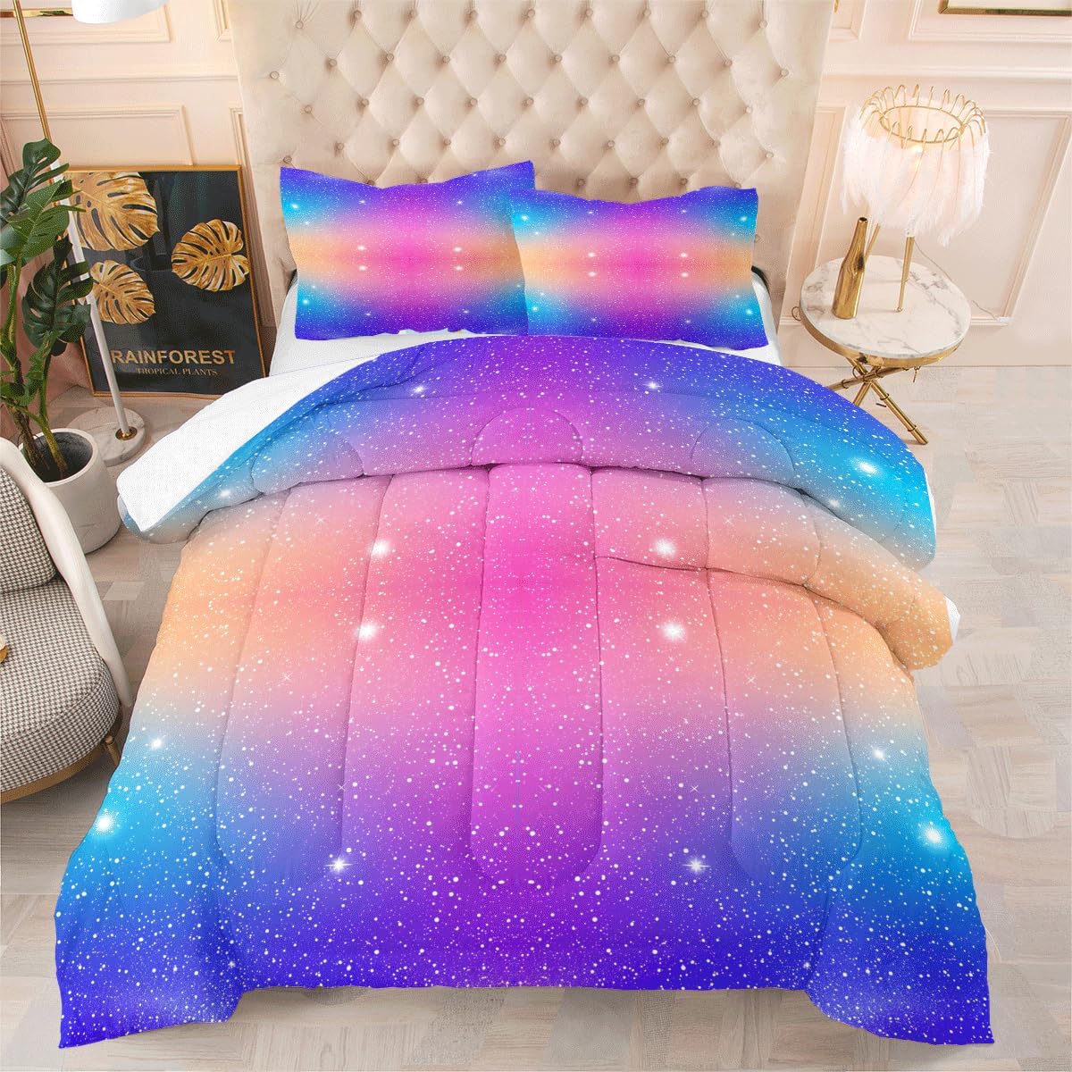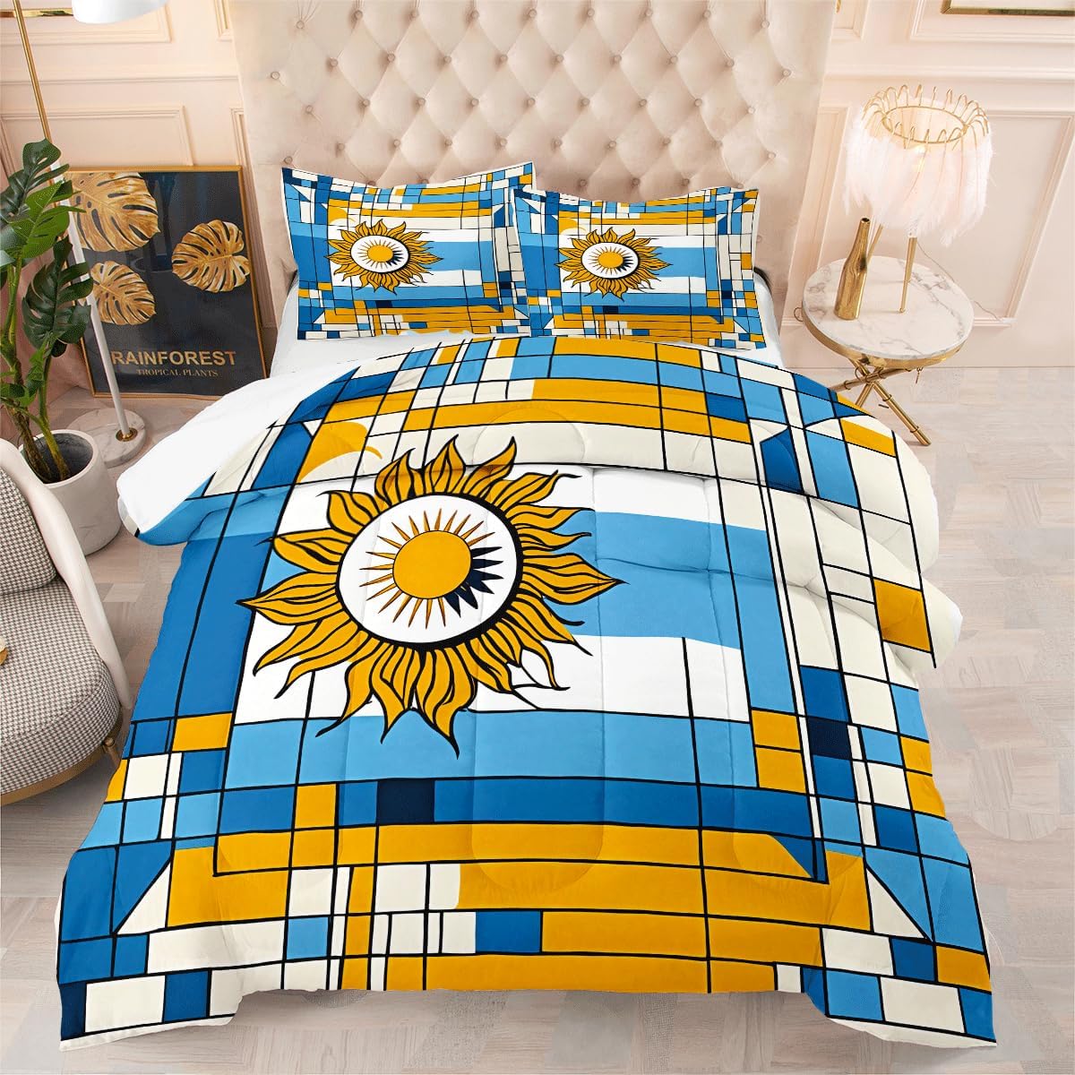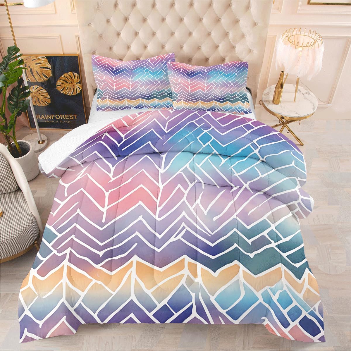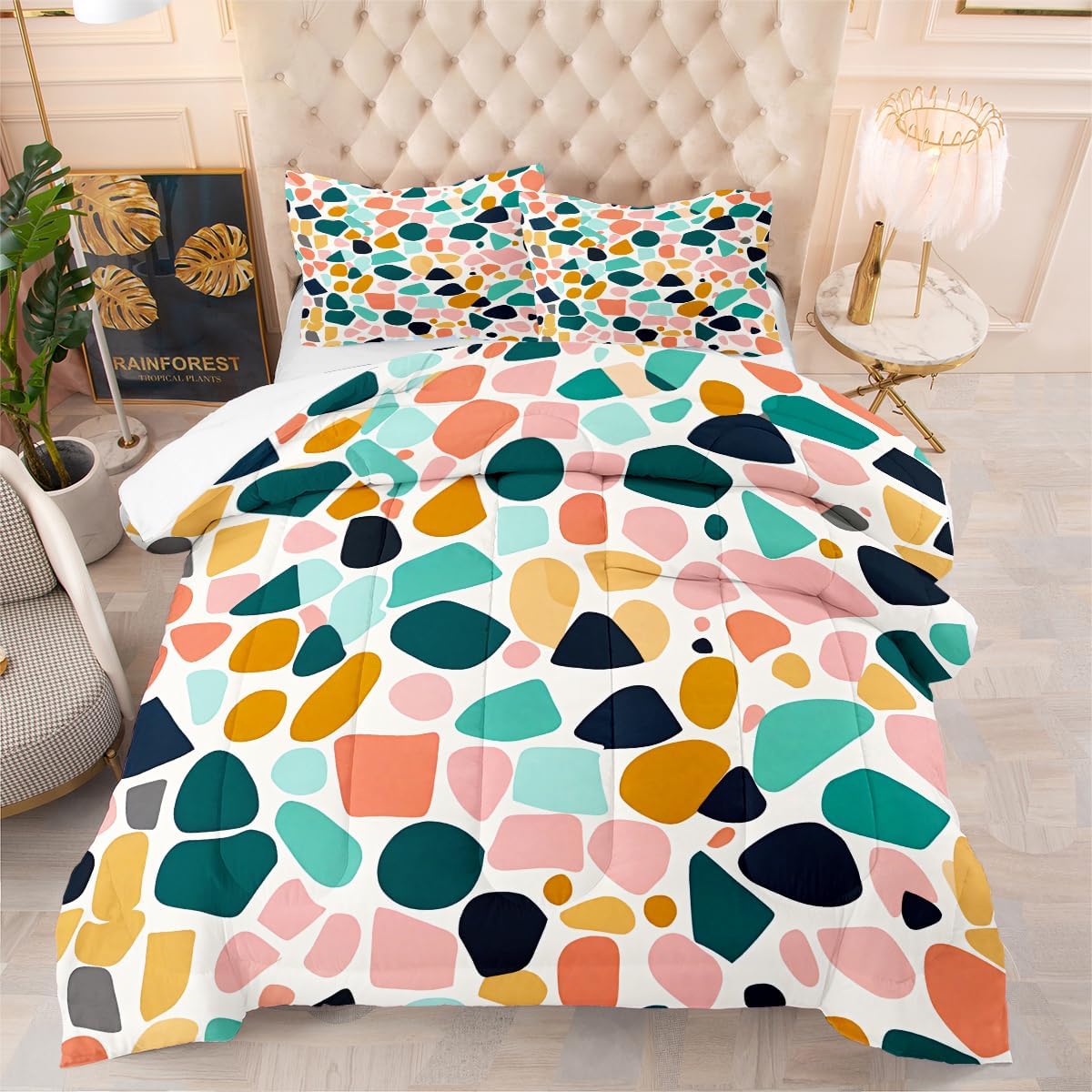 • Queen Comforter Set includes: 1 Comforter (90" x 90") and 2 Pillowcases (20" x 30"). , Please notice this the comforter Not the duvet cover