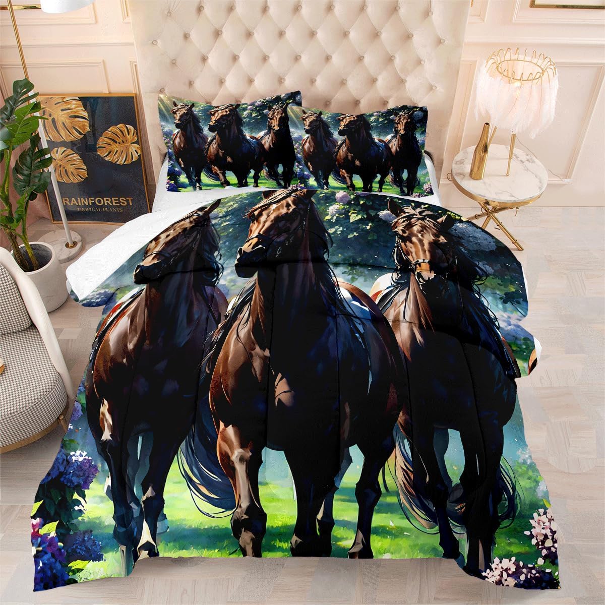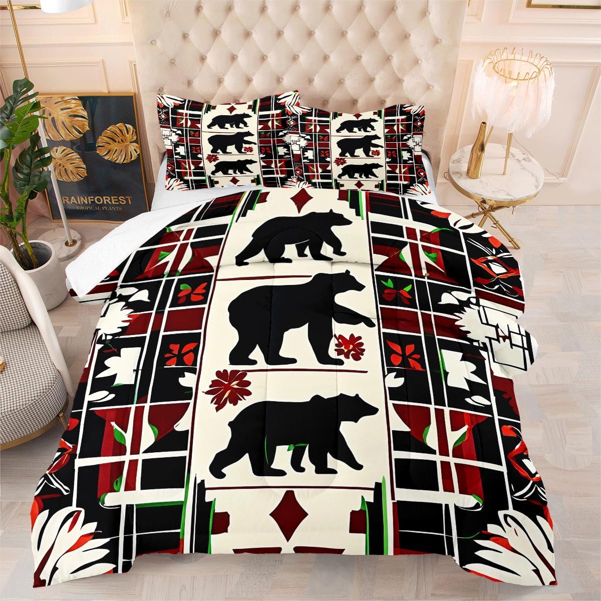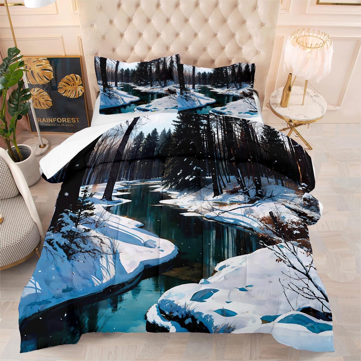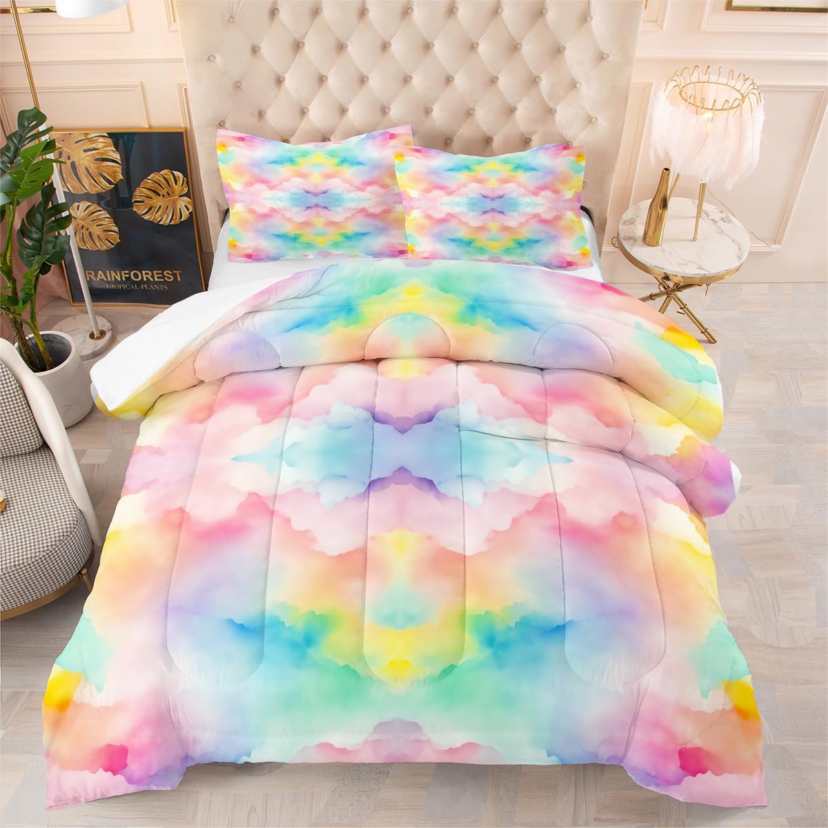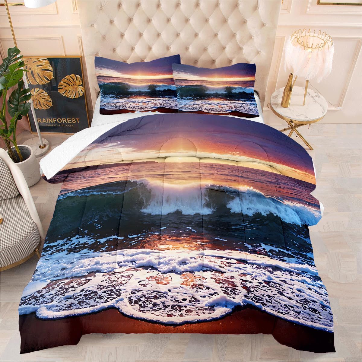 • Queen Comforter Set includes: 1 Comforter (90" x 90") and 2 Pillowcases (20" x 30"). , Please notice this the comforter Not the duvet cover