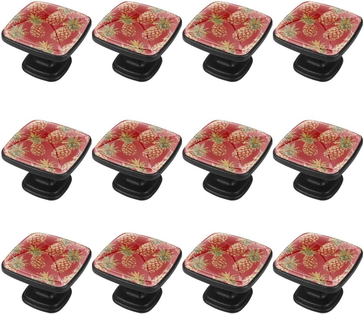 Make your home a sparkly new look with the help of our unique cabinets knobs!Our pull handles provide an easy but unique way to renew your furniture, keeping your home furniture always being stylish and modern.Product Introduction:1. Material: Crystal glass + black ABS handle, long-lasting hardware.2. Shape: Square mushroom design, looks cute and easily match any home furniture.3. Size: 1.18x0.82x0.78 in/3x2.1x2 cm. Two lengths of screws are available for you. Short 0.8x2.8CM/0.31x1.1IN, Long 0.8x3.5 cm/0.31x1.37 IN. You can choose the appropriate length according to the thickness of the furniture.4. Decorative Appearance: No matter you like cute, funny or art patterns, our store ensure that everyone can find his/her favorite drawer knobs.ApplicationOur drawers knobs are ideal for drawers, closets, cabinets, dressers, bookcases, jewelry boxes, wardrobes, cupboard, etc., help you easily open and close drawers. It can be used in many places, such as kitchen, bedroom, bathroom, living room, nursery, etc.Package Included12 X Drawer Knobs Handles, 24 X Stainless Steel Screws (12 short+12 long), and the pulls are easy to install, just remove the crystal glass drawer handle, put the screws through the furniture to be installed and tighten them.
