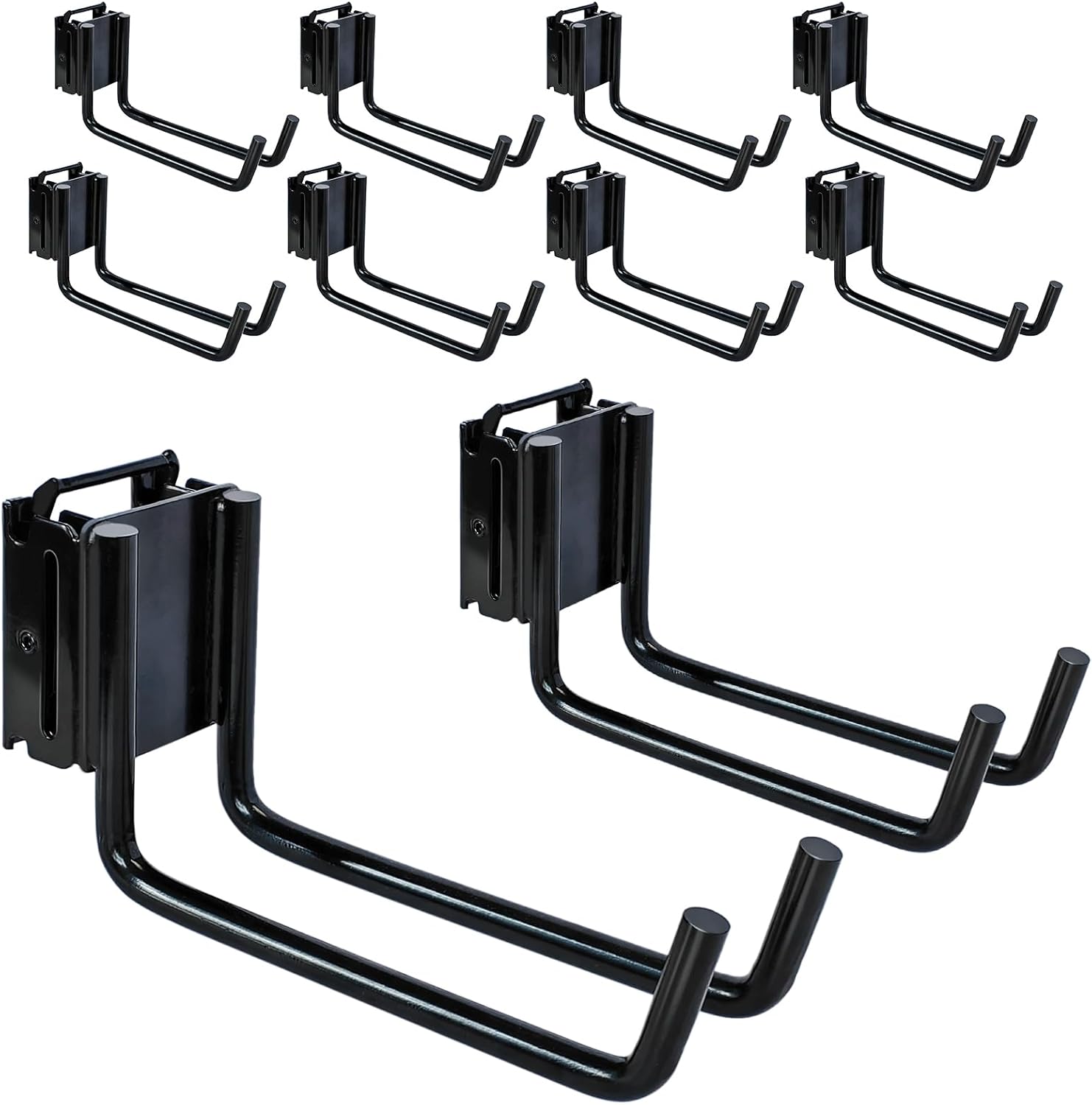• VERSATILE STORAGE HOOKS - Store multiple long-handled tools such as brooms, rakes, shovels, hay forks, garden tools and other hand tools with these sturdy E-Track Shovel/Tool hangers, or hang various accessories, extension cords, cables, hoses, ladders, bikes, car tires, and more.