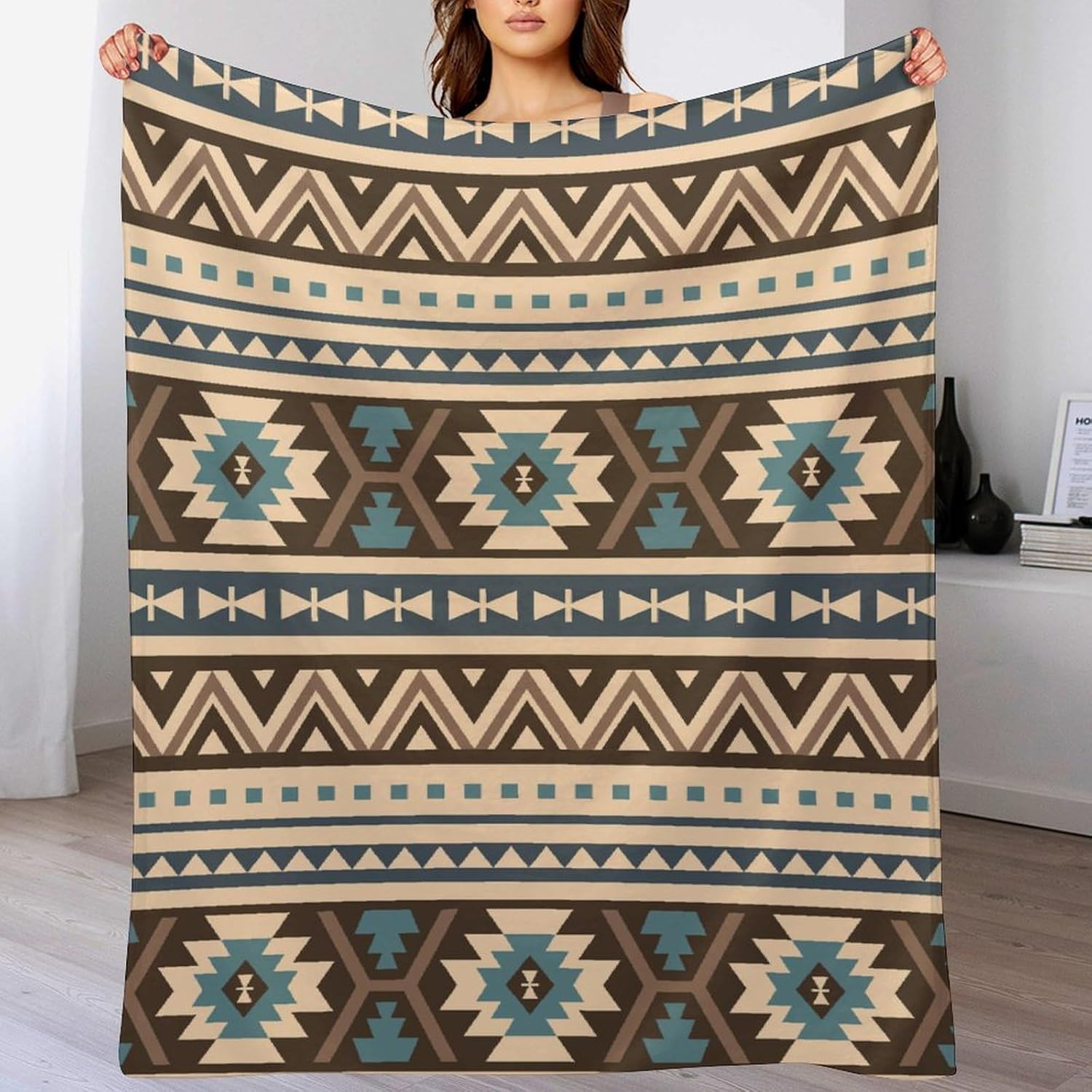 Aztec Throw Blanket Abstract Geometric Retro Tan Pattern Soft Lightweight Warm Plush Blankets for Sofa Bedroom 70"x80"