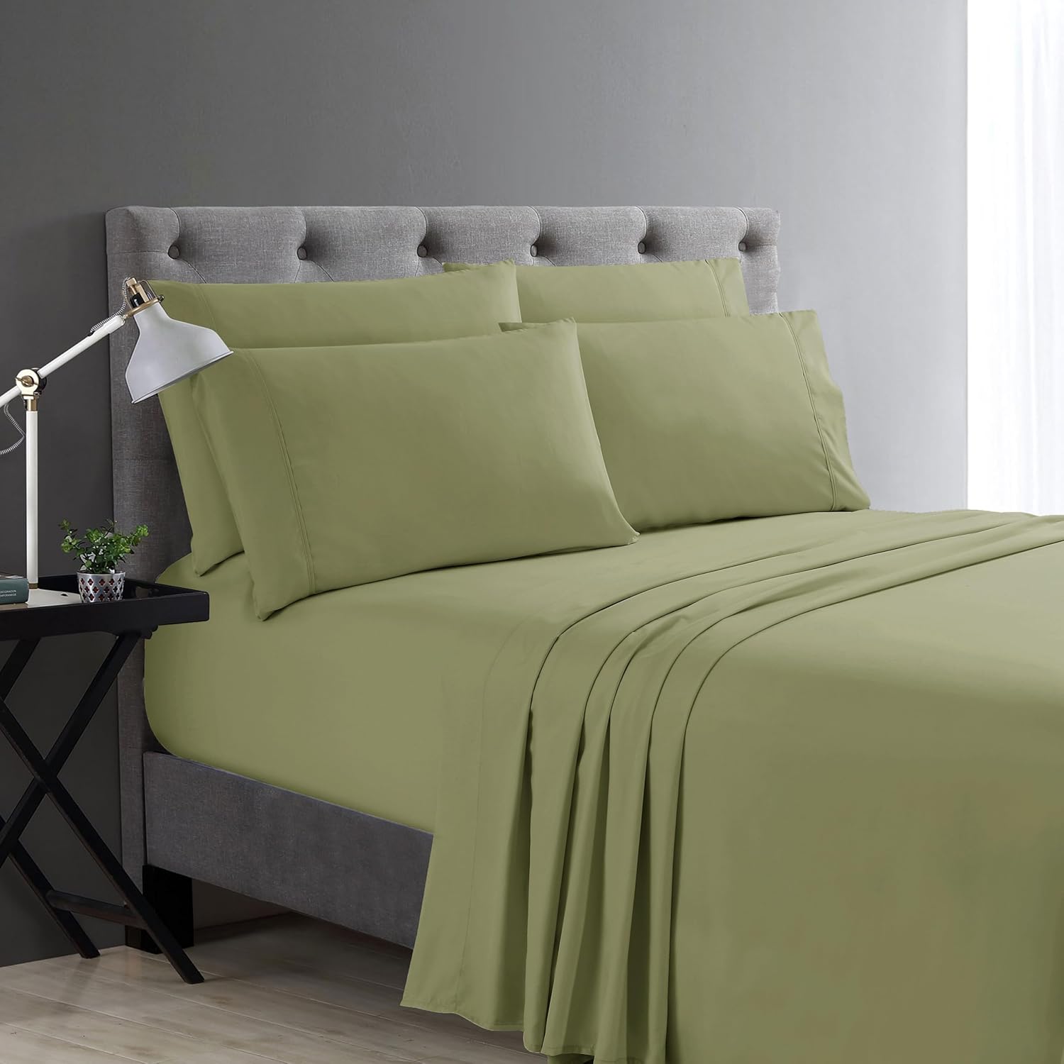 Cathay Home Micro-Caress sheet set with 2 BONUS pillow case. Luxuriously soft, 6 piece 100% twill weave microfiber sheets and pillow cases for a totally comfortable sleep. The 90gsm fabrication is extremely soft; doesn't pill when washed, dries quickly; is wrinkle free and durable. The flat sheet is 102"x105"; fitted sheet 78"x80" with 14"deep pocket drop to accommodate most mattresses and keep it snug for your sleep. Pillow cases are 20"x40" king size. King size, Black color.