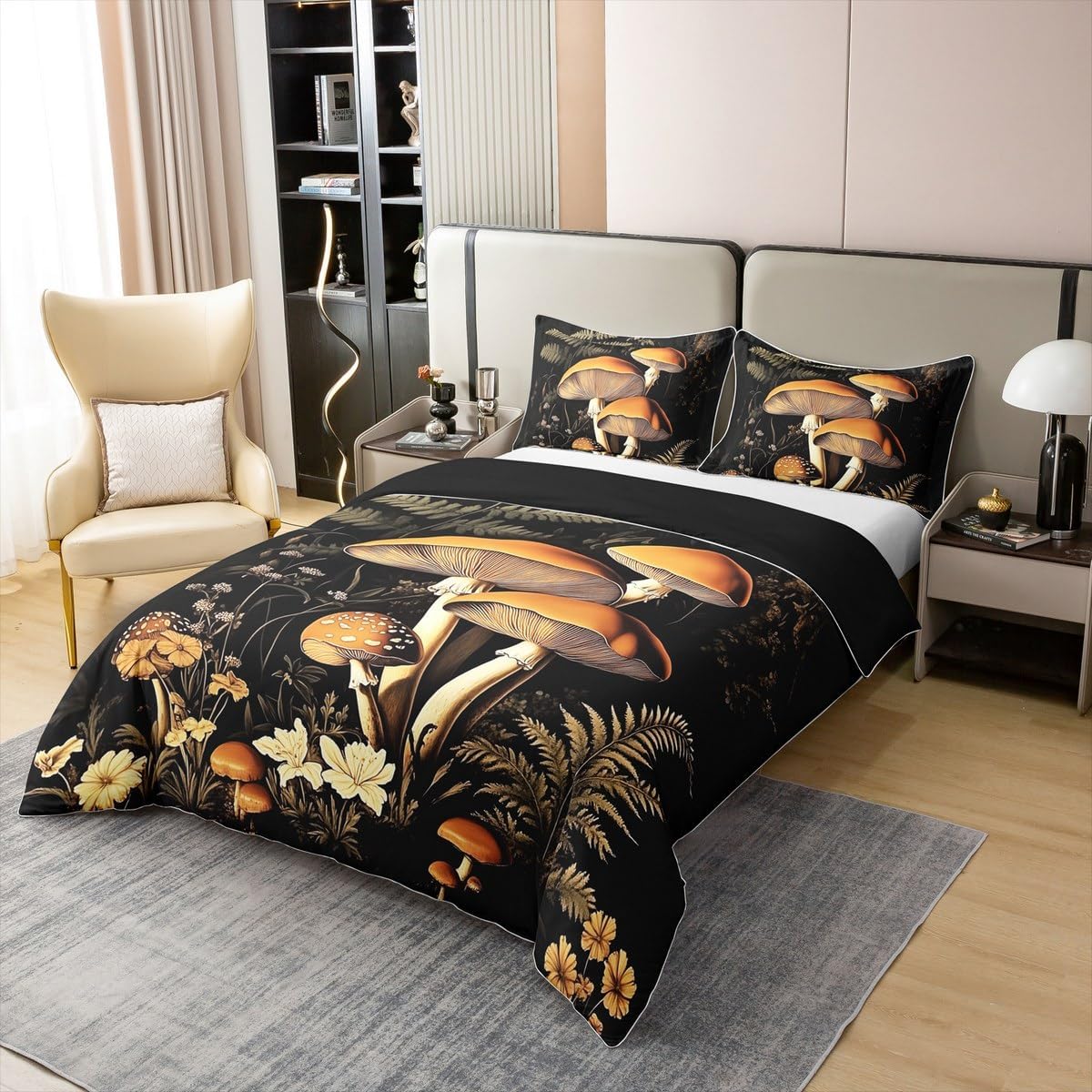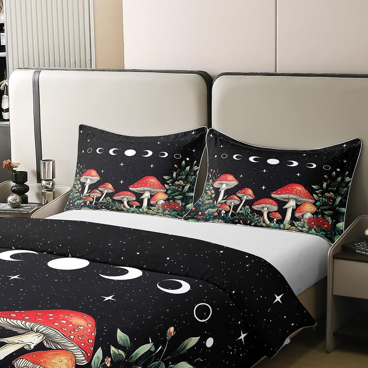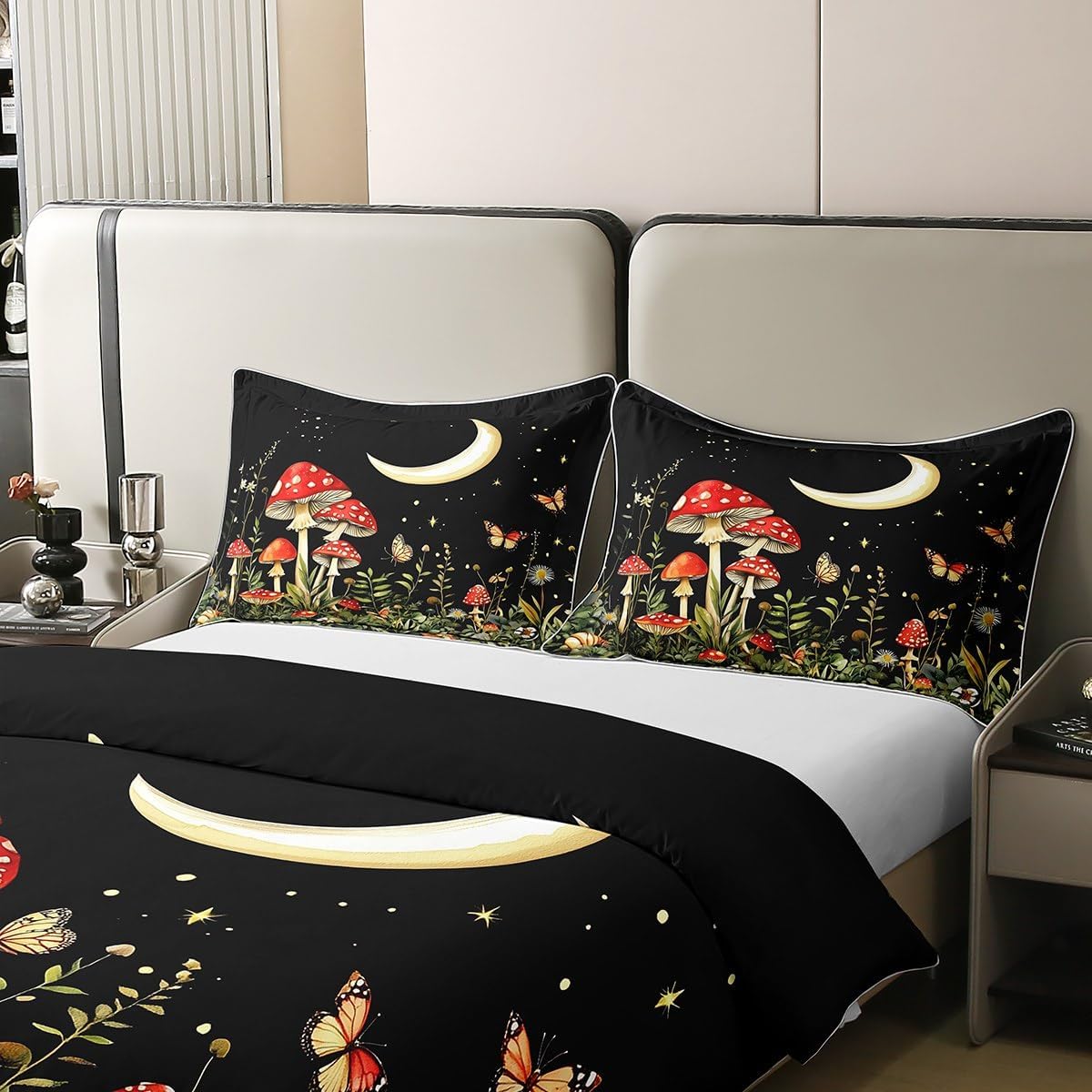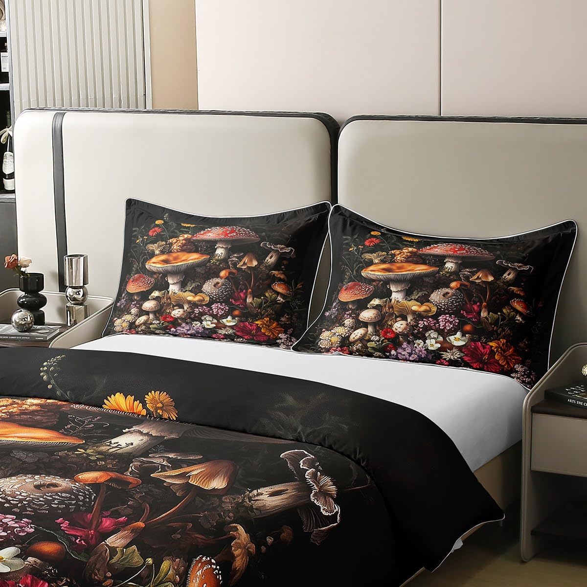 Erosebridal Wild Mushroom Duvet Cover Queen 100% Cotton,Cute Frog Mushroom Comforter Cover for Kids Boys Natural Fungus,Galaxy Rustic Jungle Botanical Room Decor for Girls Women,Soft Breathable