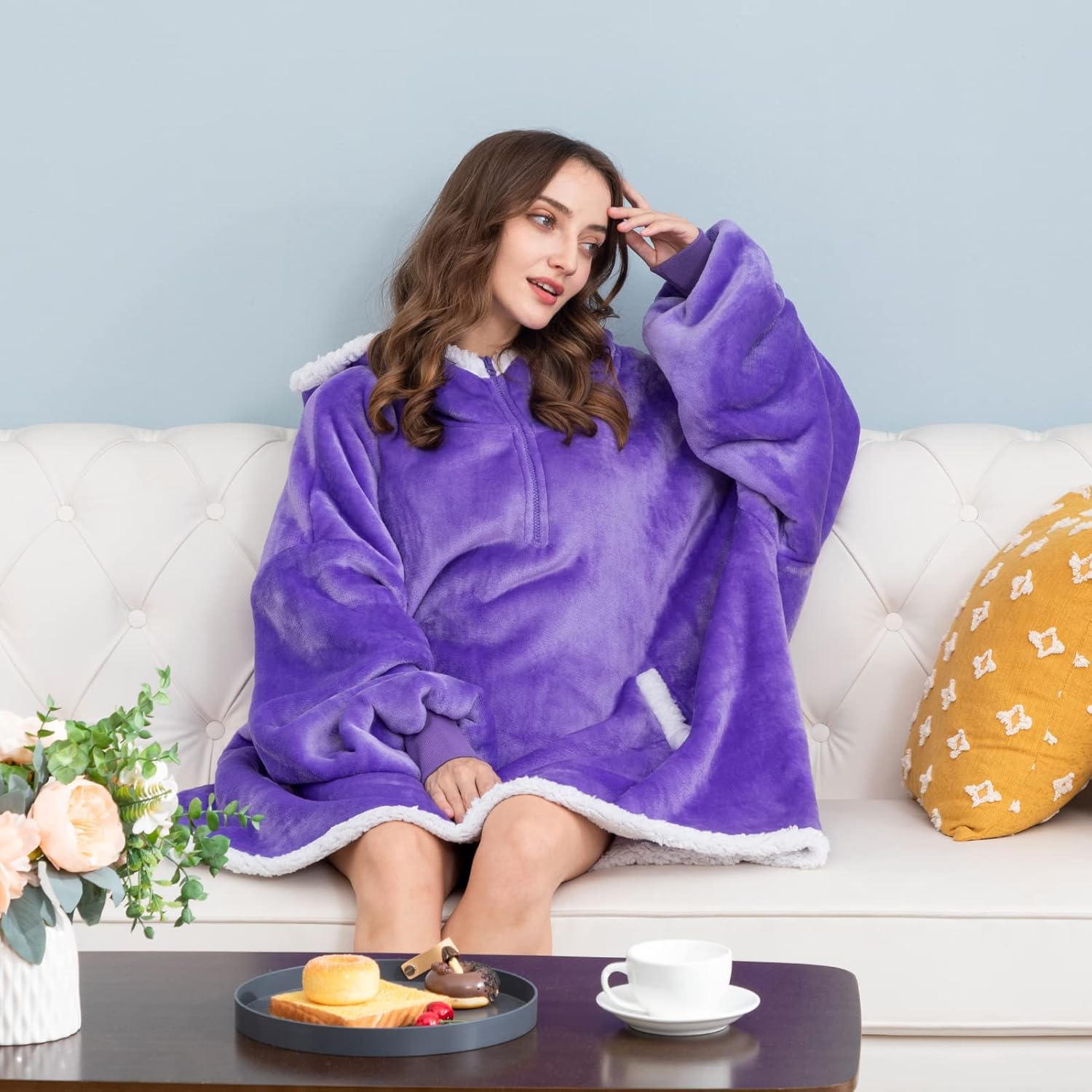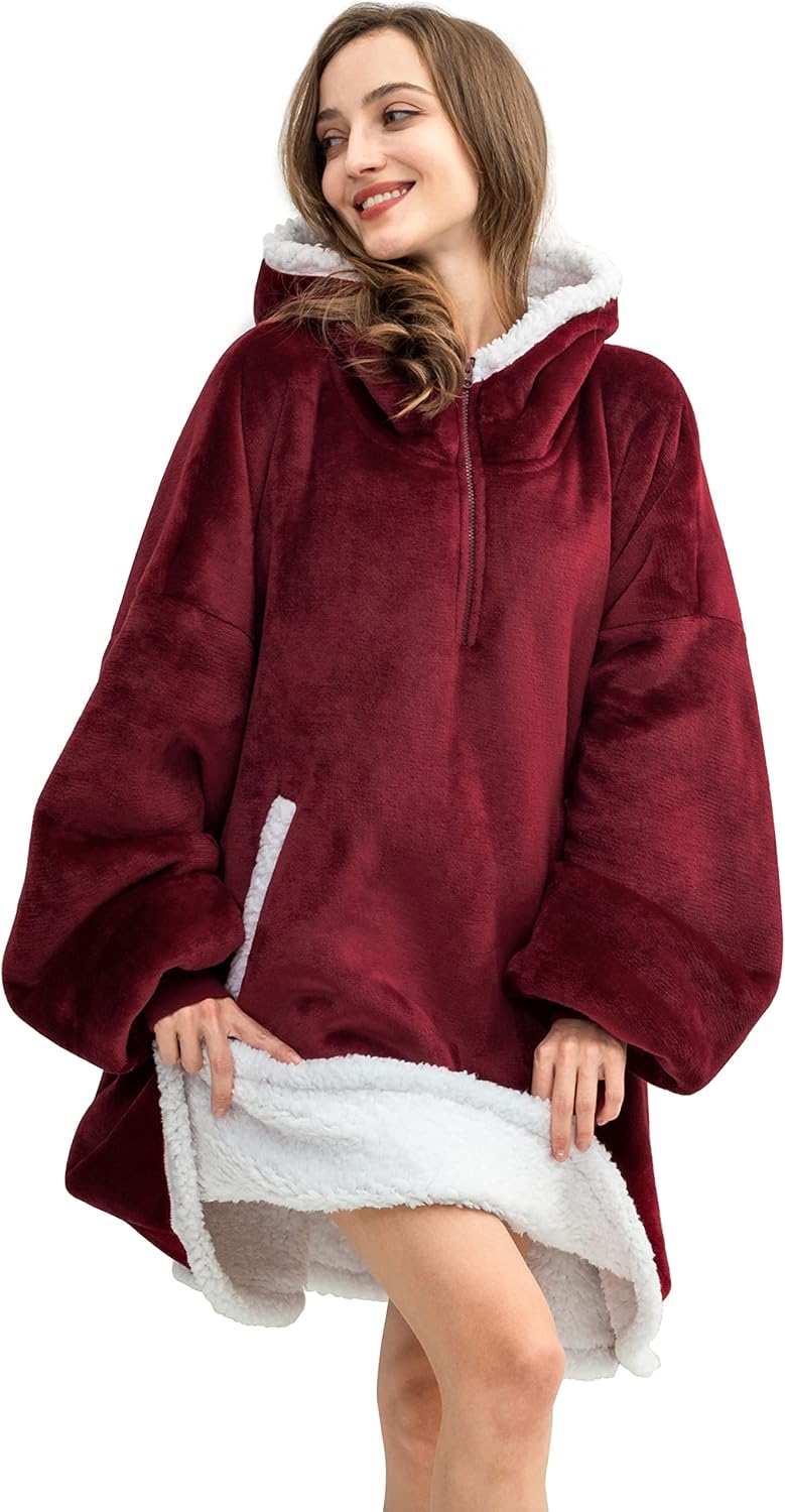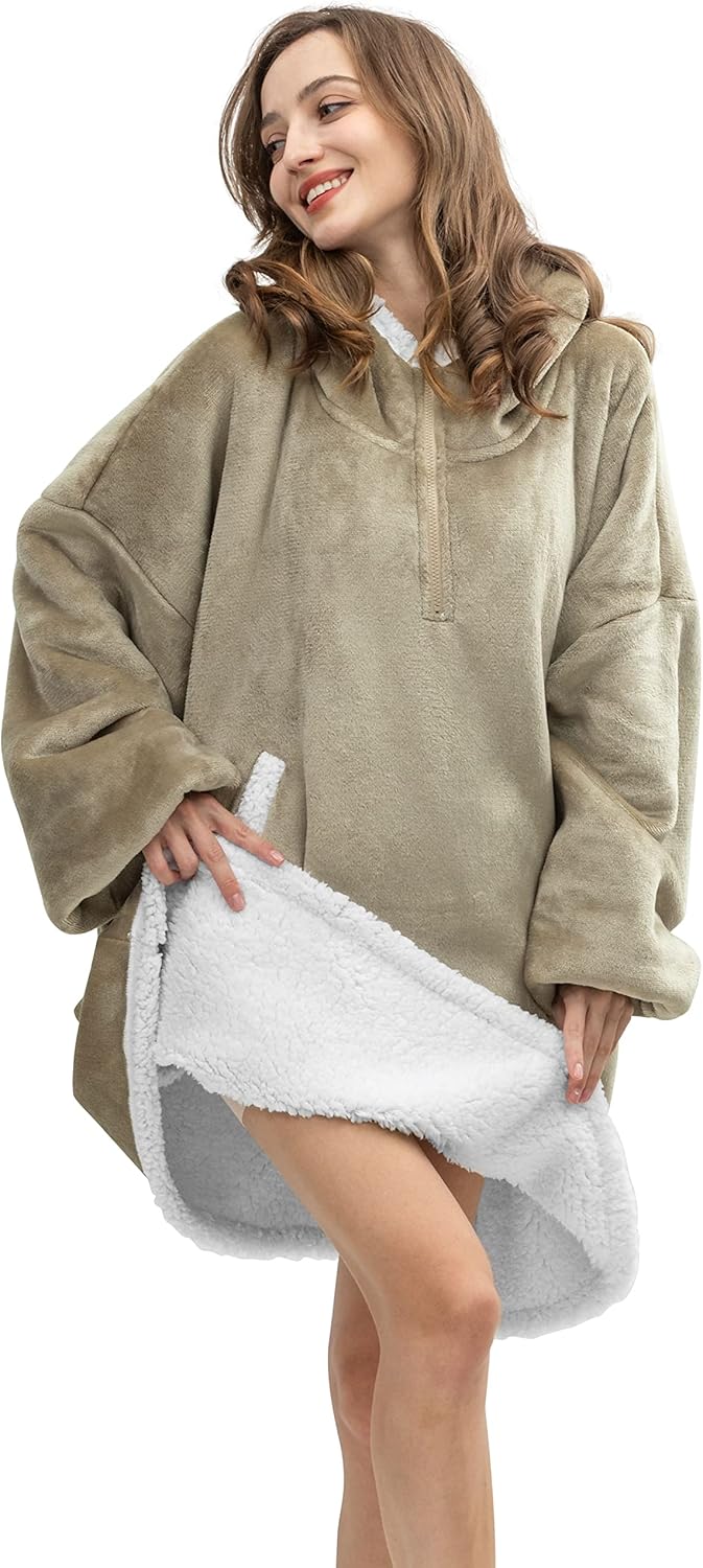 • Luxury Hoodie Blanket - HBlife blanket hoodie sweatshirt features a reversible double layer cloud-like sherpa fabric to give you a truly soft and weightless experience. And would make you like being wrapped up in a cloud. You can wear HBlife wearable blanket to do any housework and move freely! The exhaustion of all the day works will gradually fade in the sleep of the HBlife wearable blanket hoodie!