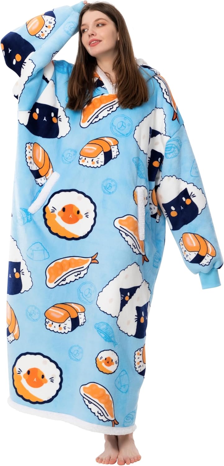 HBlife Oversized Wearable Blanket Hoodie for Adults, Thick Sherpa Fleece Sweatshirt with Elastic Sleeves & Giant Pockets, Cozy Plush Fleece Jacket, Warm Blanket for Winter, Cow