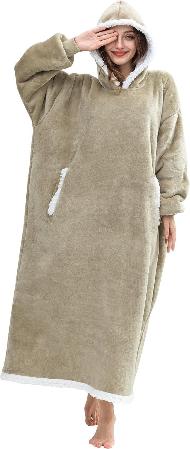 • Versatile Usage Scenarios - The long-length oversized blanket is designed to cover you completely well to keep warm and cozy from head to toe. Snuggling on your couch and bed with the HBlife blanket sweatshirt to enjoy your family's happy hours while watching favorite TV shows - Perfect for indoor and outdoor use to provide consecutive warmth in chilly weather, especially for camping and picnic.