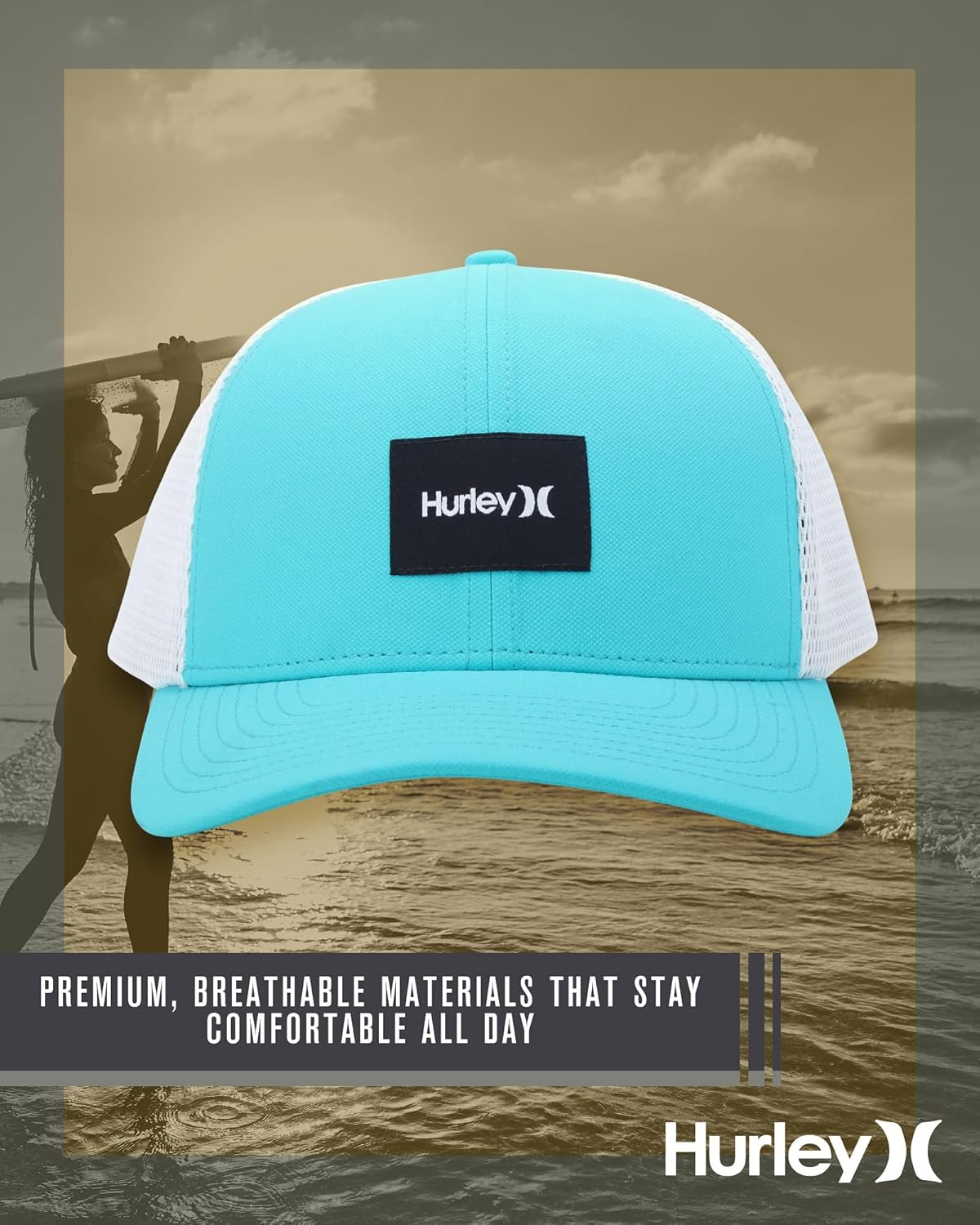 MODERN STYLE & COMFORT: Experience the ultimate blend of style and comfort with the Hurley Men's Fairway Trucker Hat. Designed to keep you looking sharp, this hat for men features a structured curved bill that holds its shape and offers a modern silhouette. The mesh panels on the sides and back provide optimal airflow, making it an ideal choice for all-day wear, from the fairway to casual outings.