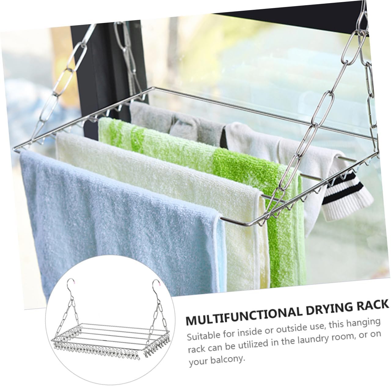 Package Include 1 x Drying Rack Characteristics -Product Info:Balcony sock drying rack - Material: Stainless steel laundry drying rack. - Color: Silver drying racks. - Thickened solid stainless steel, solid welding, no deformation clothes hanging rack. - Stainless steel frame forming in one body, high elasticity and easy to pinch clothes dry rack. - The movable buckle can be adjusted according to the need, so that the object surface is stable pants hangers. - Multi-functional shelving, can store pants, towels, shoes, potted plants and other items, hanging at will pant hanger. - With this item, it can bring much convenience in your life clothes drying rack heavy duty. - A variety of hanging methods can be adjusted at will clothing racks for drying clothes.Goods Informationlaundry drying is the for you.clothes hanging rack Are you looking for a professional, yet drying rack? Are you in search of a sturdy, trustworthy drying rack that can do multiple jobs at once? , ! Our professional drying rack must meet your need