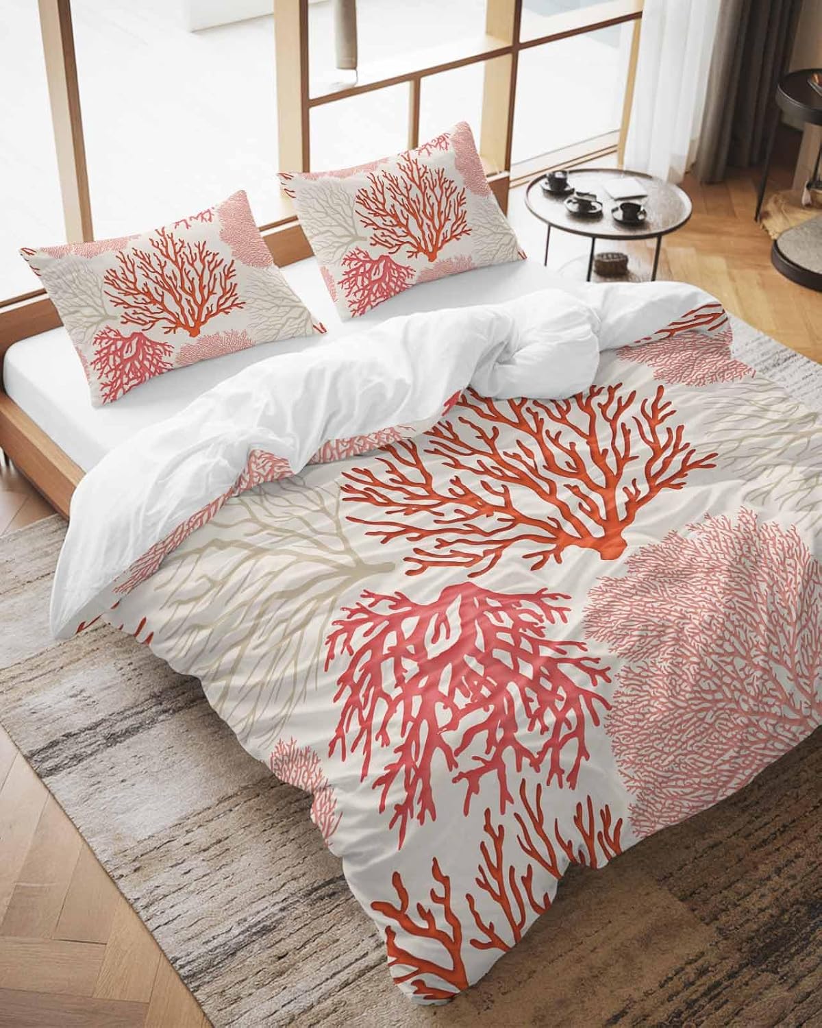 Cozy Bedding Set Makes You More Enjoy Your Sleep3PCS Duvet Cover SetsDuvet Cover: One Side Print, the back side is whiteSize Details1. Twin Size -- 1*Duvet Cover(66*86 Inch) + 2 Pillowcase (20*30 Inch)2. Full Size -- 1*Duvet Cover(86*86 Inch) + 2 Pillowcase (20*30 Inch)3. Queen Size -- 1*Duvet Cover(90*92 Inch) + 2 Pillowcase (20*30 Inch)4. California King Size -- 1*Duvet Cover(92*106 Inch) + 2 Pillowcase (20*36Inch)Microfiber FabricDuvet cover is made with premium microfiber polyester material, makes you feel comfortable and smooth.Protect your comforter from dirty and torn for using the duvet cover.Lightweight & Breathable & Cool to the TouchOur luxuriously soft Duvet Covers will create a serene sleeping experience, leaving you feeling refreshed and rejuvenated.Tight Stitching3 pieces duvet covers with vibrant pattern is exquisite and durable enough for long time use.Thoughtful DetailsHidden Zipper ClosureThe zipper closure easy to put on and take off. Exquisite hidden zipper, sturdy and durable, it is more beautiful than the traditional zippers.Concealed Corner Ties4 corner ties inside the cover securely fasten your duvet insert in place without bunching or shifting for supreme comfort.Wash InstructionWash / hand machine with cold water, on a gentle cycle, tumble dry on low heat, do not bleach.Warm TipsDue to different light conditions and your screen display settings, the actual colors may vary slightly from the pictures.Please measure your comforter correctly before purchasing to avoid size issues.