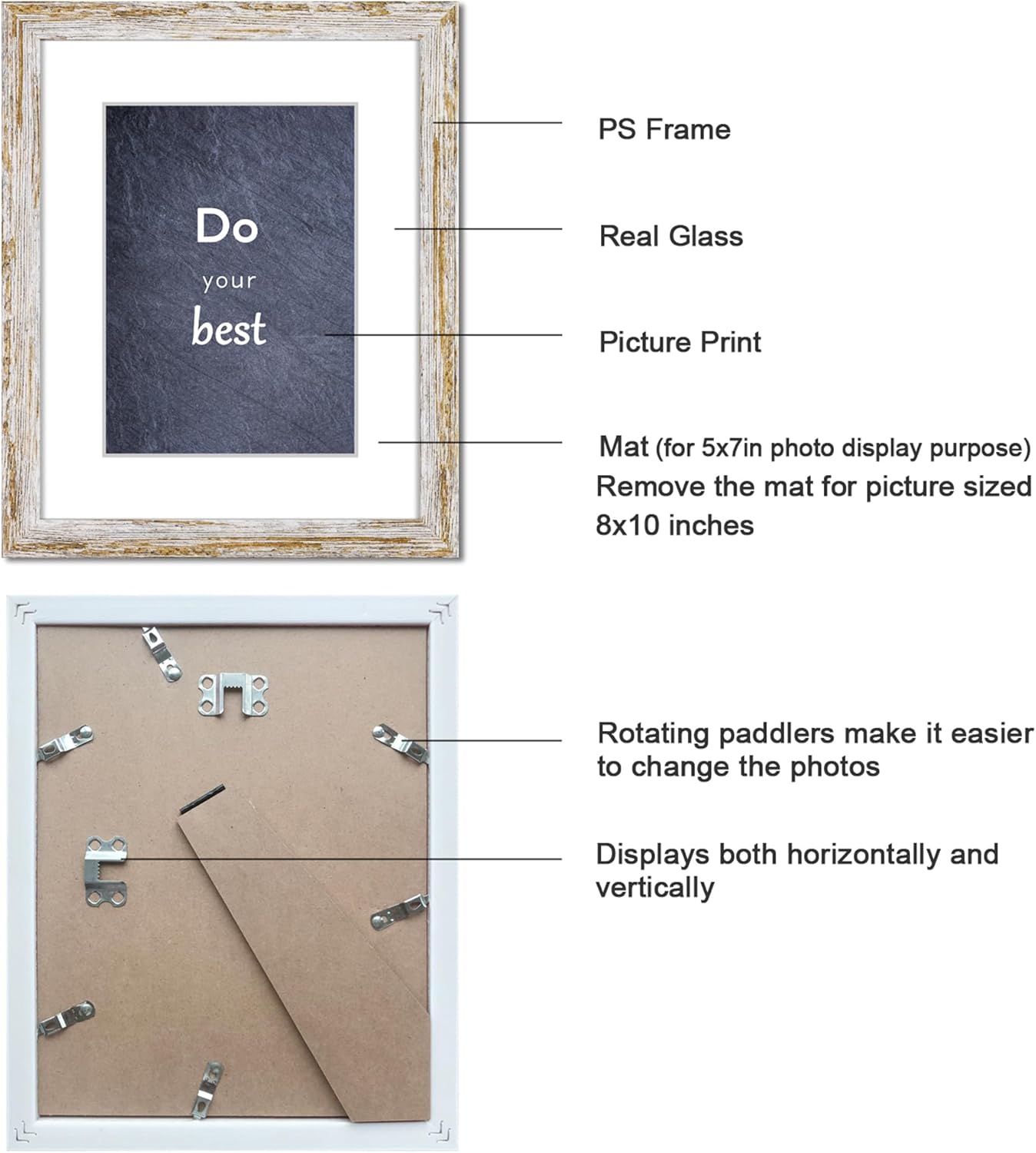 • PREMIUM QUALITY: These frames with distressed retro design are more beautiful and abrasion resistant. Polished real glass cover prevents scratches and damages to your photos to protect your artworks or posters over the years.