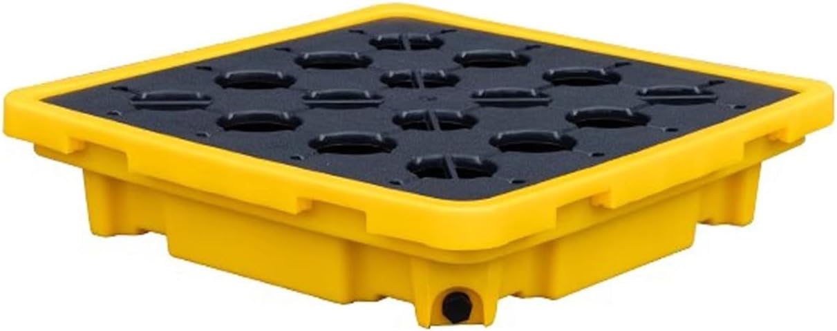 The Spill Containment Platform is designed to securely hold various drums including oil, paint, chemical liquids, and water. It is ideal for use in maintenance stores, factories, workshops, warehouses, laboratories, and farms. Product Name: Spill Containment Platform Material: High Density Polyethylene Colors Available: Yellow, Black Sizes Available: - 13.2 x 13.2 x 2.2 in - 19.5 x 14.2 x 4.1 in - 26 x 14.2 x 4.7 in - 26.4 x 26.4 x 5.9 in - 28.3 x 28.3 x 6.3 in - 47.2 x 23.6 x 7 in - 51.2 x 26.8 x 5.9 in Load Capacities: - 13.2 x 13.2 x 2.2 in: 110 lbs - 19.5 x 14.2 x 4.1 in: 110 lbs - 26 x 14.2 x 4.7 in: 330 lbs - 26.4 x 26.4 x 5.9 in: 1760 lbs - 28.3 x 28.3 x 6.3 in: 1100 lbs - 47.2 x 23.6 x 7 in: 2650 lbs - 51.2 x 26.8 x 5.9 in: 4400 lbs Leakage Capacities: - 13.2 x 13.2 x 2.2 in: 1 gallon - 19.5 x 14.2 x 4.1 in: 3.3 gallons - 26 x 14.2 x 4.7 in: 3.7 gallons - 26.4 x 26.4 x 5.9 in: 11 gallons - 28.3 x 28.3 x 6.3 in: 11 gallons - 47.2 x 23.6 x 7 in: 9 gallons - 51.2 x 26.8 x 5.9 in: 18 gallons Package Includes: 1 Spill Containment Platform